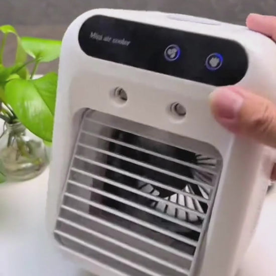 Gör sommaren svalare med denna smarta, portabla luft kylare som kombinerar fläkt, luftfuktare och kylning i ett. Perfekt för hemmet, kontoret eller bilen.
